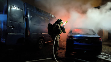 Nocny pożar dwóch samochodów w Czersku. Straty to 90 tys. zł. "Ugaszono pojazdy, jednocześnie osłaniając budynek mieszkalny" (FOTO)