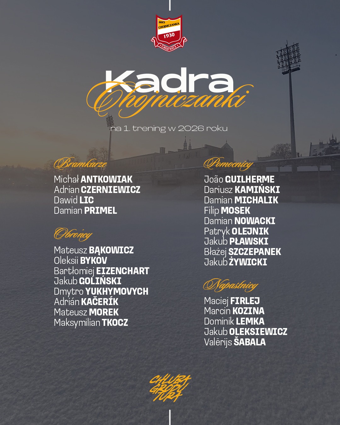 Brakowało jedynie Shuna Shibaty, którego lot powrotny z Japonii został opóźniony. Nie było też Konrada Gutowskiego, który za porozumieniem stron rozwiązał kontrakt i odszedł z Chojniczanki. Grał tu przez pół roku. W 16 występach strzelił jednego gola.