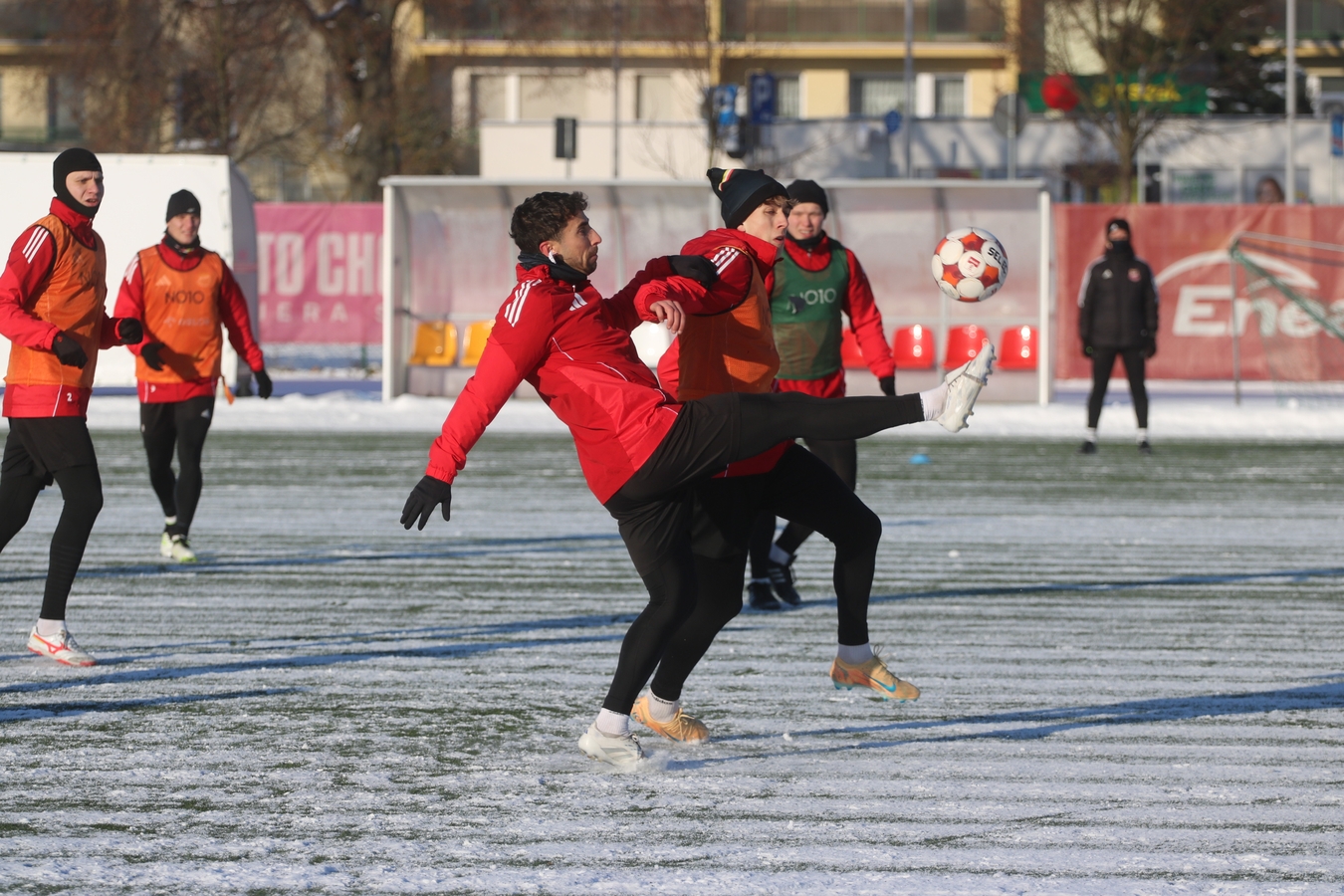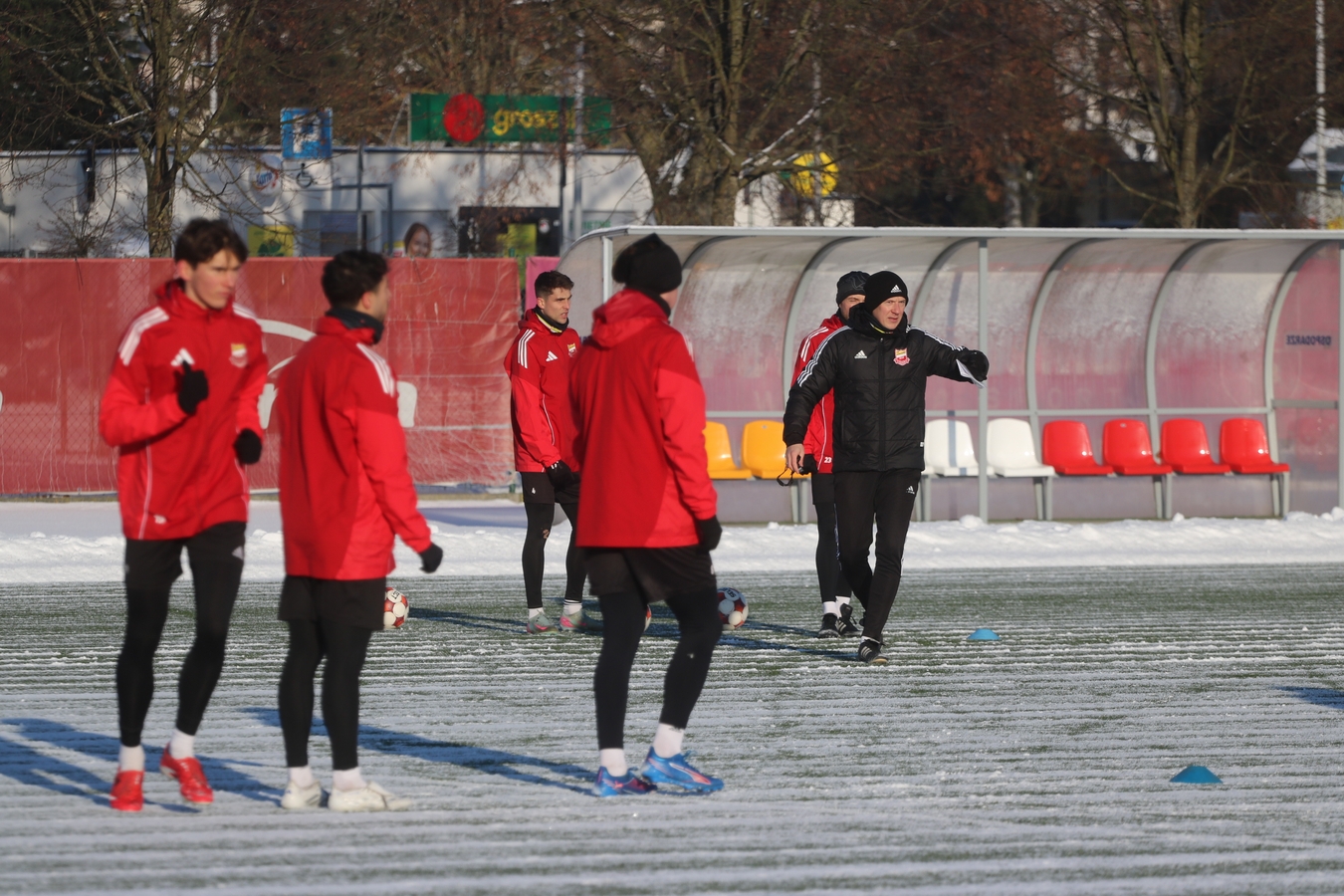 Trening wprowadzający. Chcieliśmy zobaczyć w jakiej dyspozycji drużyna wróciła. Trudne warunki, ale bardzo dobre nastawienie. I tutaj pomimo trudnych warunków - szczególnie ta grupa ofensywna na bardzo dobrym poziomie - więc wracamy z treningu z uśmiechem.