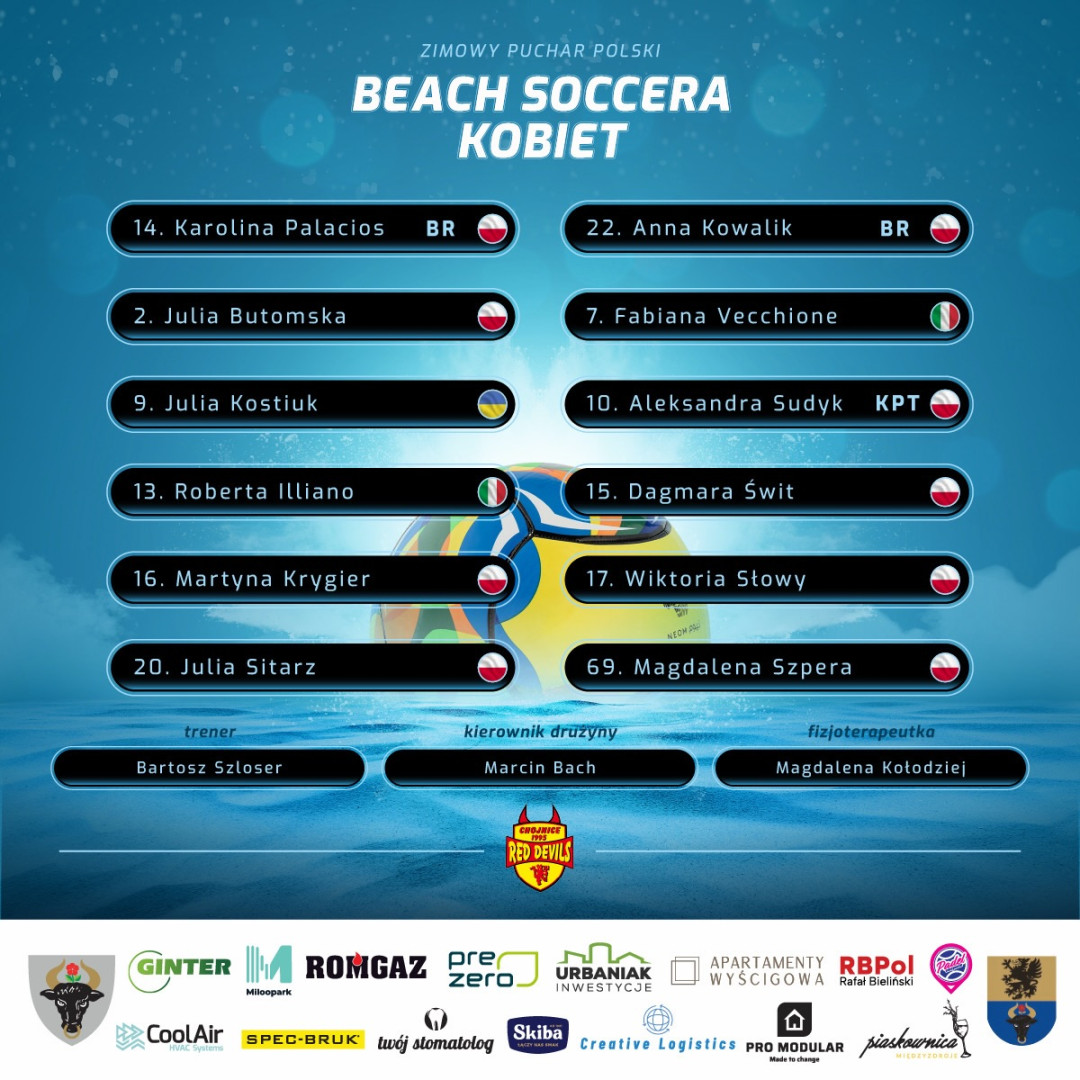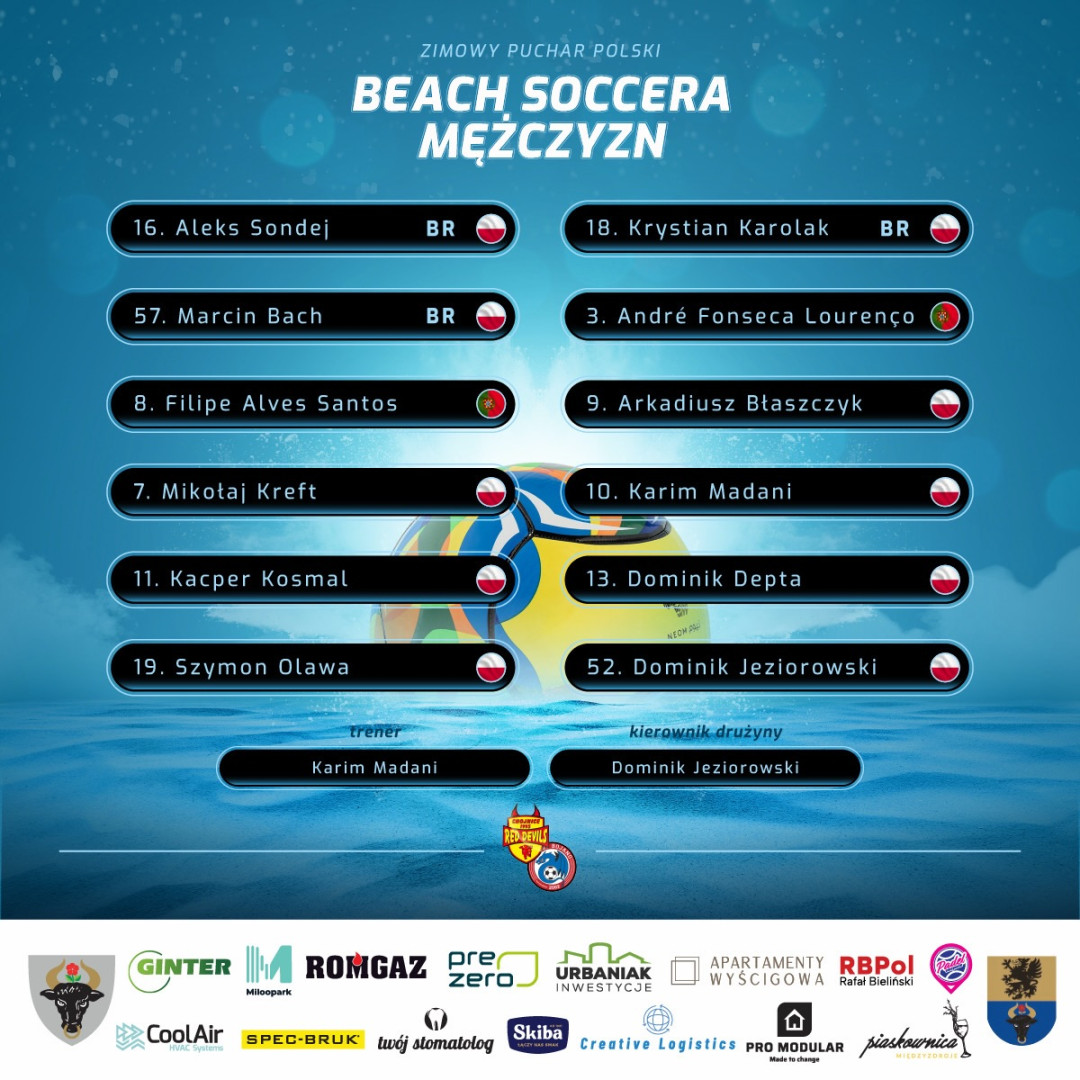 Zamknij oknoOd zwycięstwa w Zimowym Pucharze Polski Beach Soccera sezon na piasku rozpoczęli zawodnicy Red Devils Chojnice/Dragon Bojano. W hali w Kozłowie koło Gliwic zaliczyli komplet zwycięstw.