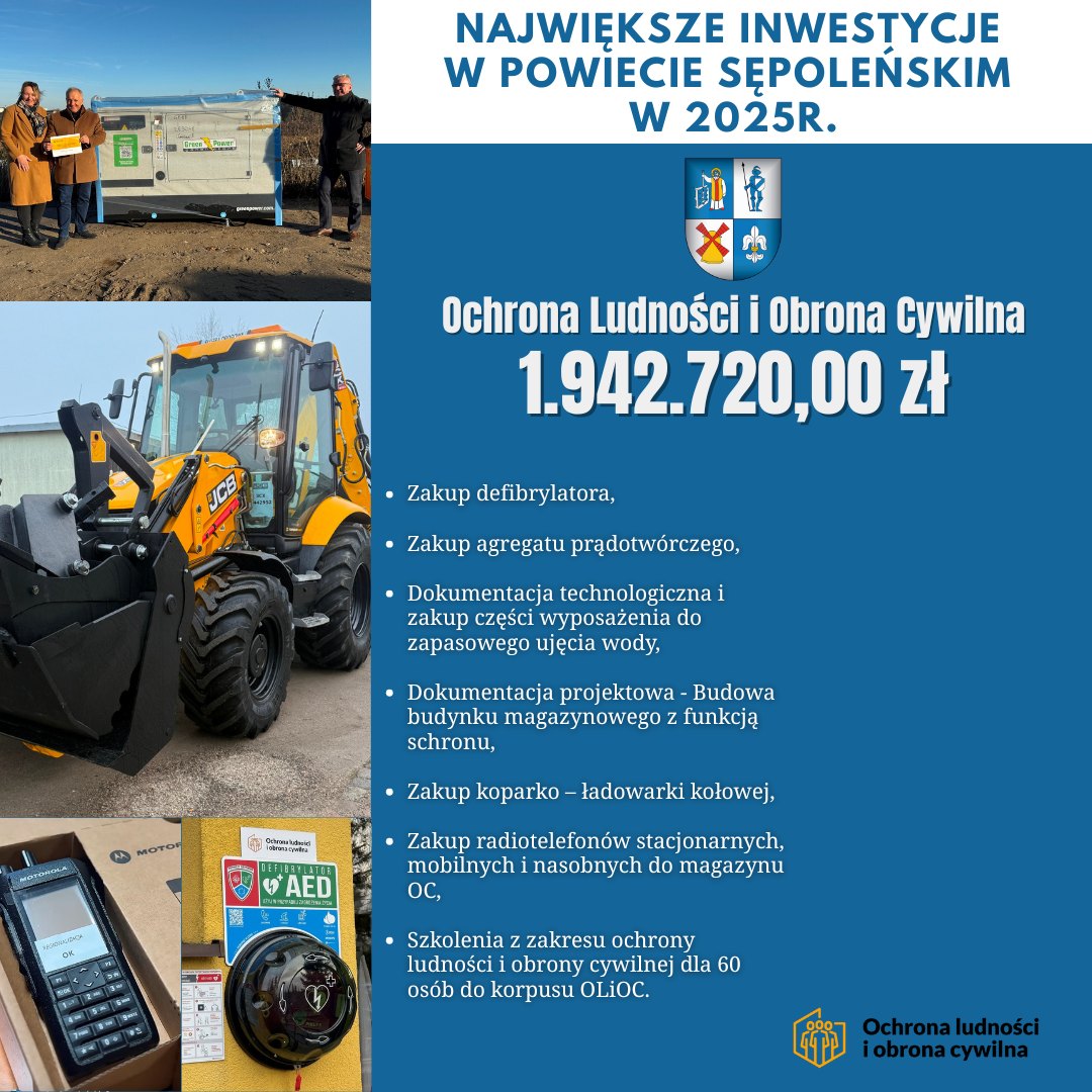 Zrealizowaliśmy 7 dużych projektów, między innymi zakupiliśmy agregat prądotwórczy, defibrylator, wyposażenie do stacji zapasowego ujęcia wody w szpitalu powiatowym. Kupiliśmy koparko-ładowarkę kołową oraz radiotelefony stacjonarne, mobilne i nasobne do magazynu OC, a także udało nam się przeszkolić 60 osób z zakresu ochrony ludności, obrony cywilnej do korpusu.