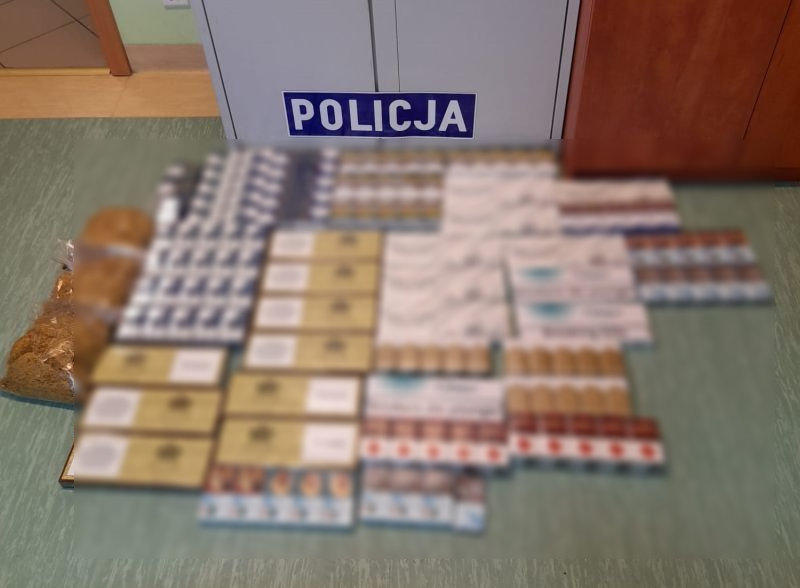 Na miejscu ujawniono 396 paczek papierosów różnych marek, nieposiadających wymaganych polskich znaków akcyzy, a także trzy worki strunowe z tytoniem o łącznej wadze około 1,5 kilograma. Łącznie w sprawie zabezpieczono 413 paczek, czyli 8260 sztuk papierosów, oraz tytoń bez wymaganych oznaczeń skarbowych.