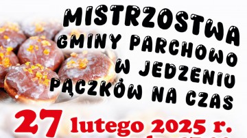 Mistrzostwa Gminy Parchowo w jedzeniu pączków na czas. 12 lutego o 17:00 w Gminnym Centrum Kultury w Parchowie. Śmiałkowie będą mieli za zadanie zjeść pięć pączków z marmoladą, z lukrem. Chodzi o dobrą zabawę, dobre humory. Na scenie zaprezentuje się grupa z muzyką na żywo. zespół Cukier Puder, prowadzącym będzie pan Robert Jakubek.