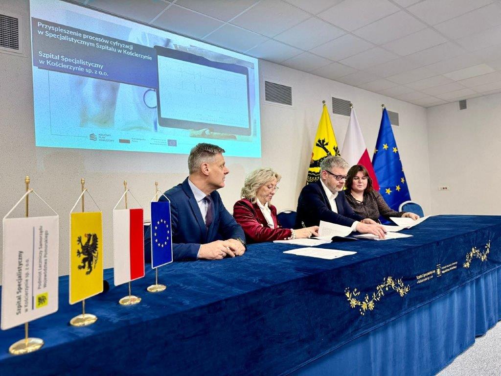 Usprawnią obsługę pacjentów, wprowadzą zdalny monitoring chorych oraz nowe technologie i systemy zmieniające sposób pracy personelu. Rusza rewolucja cyfrowa w kościerskim szpitalu. Przedstawiciele placówki podpisali już umowę z wykonawcą projektu. Szpital pozyskał na ten cel dofinansowanie z Ministerstwa Zdrowia. 9 mln zł pochodzi z Krajowego Planu Odbudowy i Zwiększania Odporności: